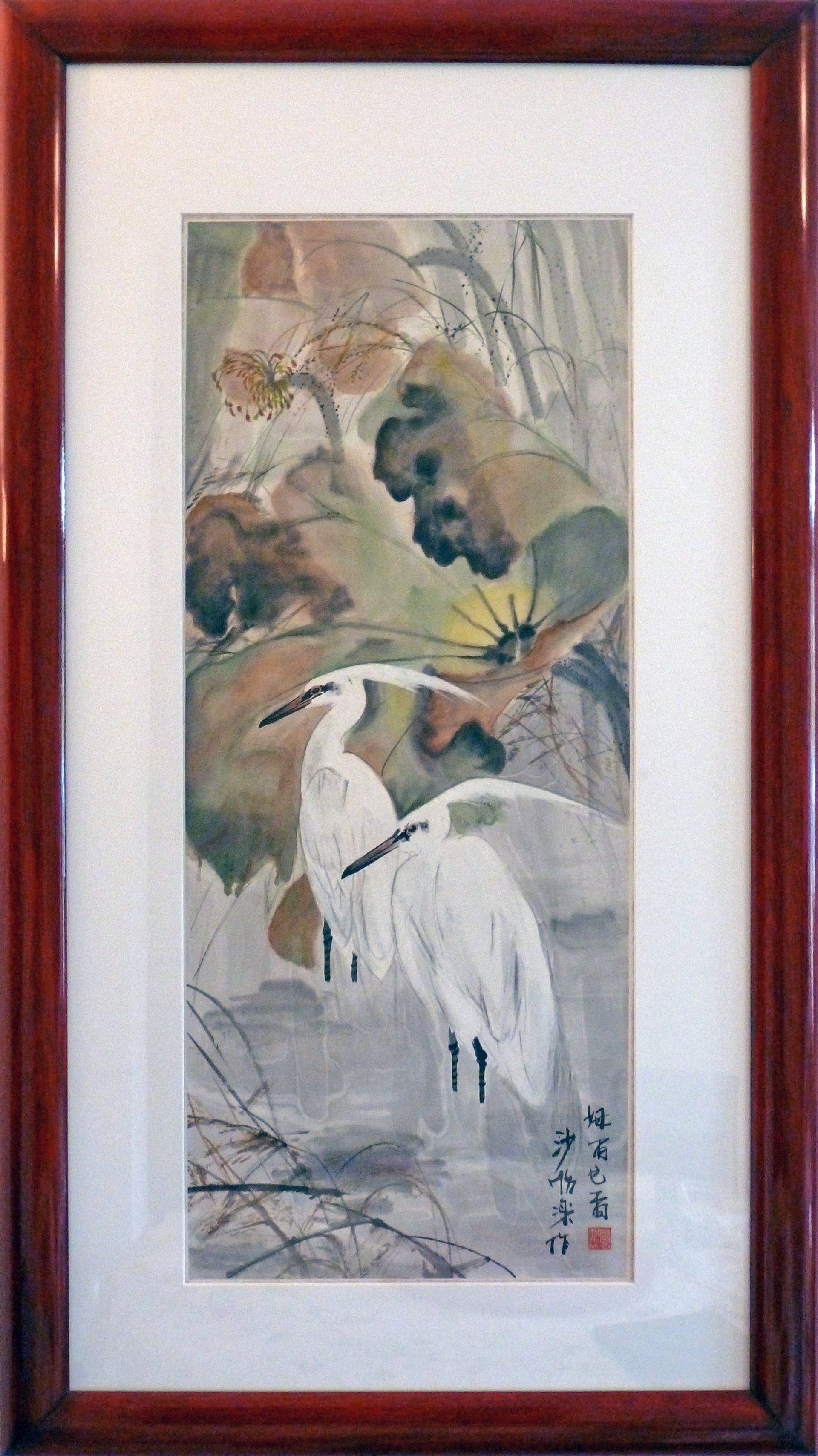 Wasserfarben auf Reispapier, auf Seide aufgezogen, signiert, M.Z.